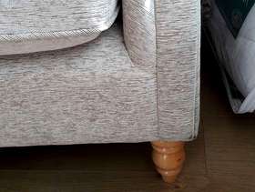 2 seater settee with reversible cushions, set on 4 light wooden legs. Main colour is Beige with orange floral design.