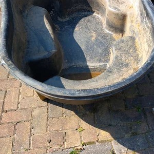 Rigid pond liner. Needs a clean up but otherwise fine. Dimensions- L- 63" ( 158 cms ) W - 40" ( 102 cms ) D - 18" ( 45 cms ) Collection from our drive