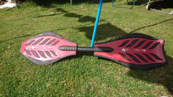 The Ripstik is kind of like a wobbly skateboard with 2 wheels - for older kids and adventurous adults. The Spiderman Bouncy Stik is like a younger kids version of a pogo stick. Both in safe working condition.