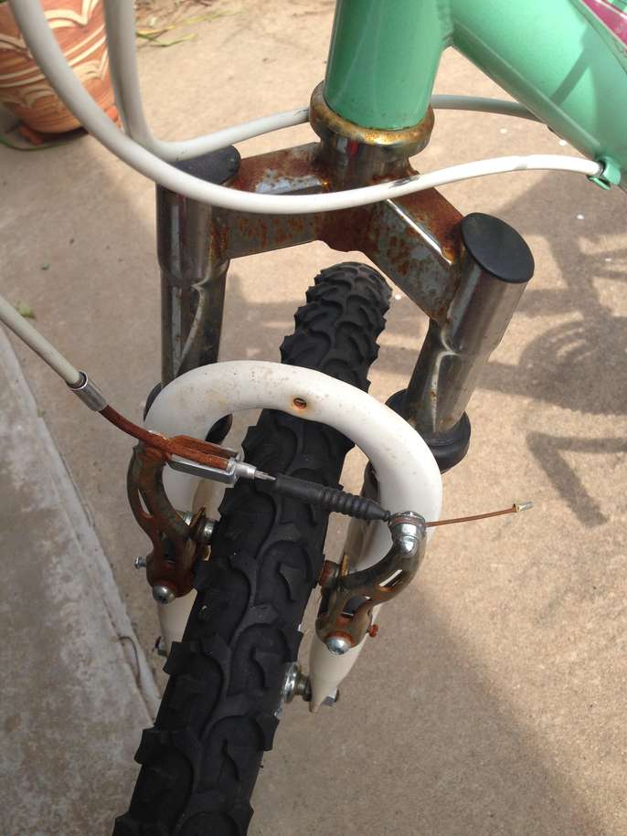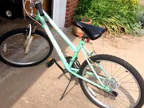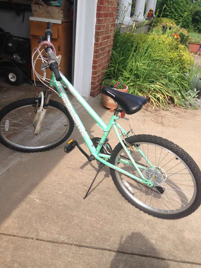 Sea foam green roadster bike. Alittle rust but runs great. Size small, I'm 5ft fits me perfectly. Good bike for campus riding and causal rides. 5 speed.