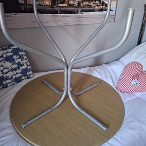 Round table with sturdy legs. excellent condition. approx 30 inches diameter. Collect from Newquay Cornwall