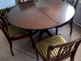 Round dining table and 4 chairs.