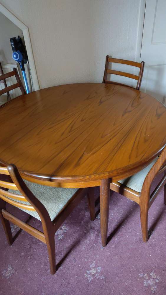 G plan table and chairs set extends out to oval table - very good condition as always has a felt cover no scrathes.