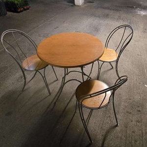 Old small folding table with 4 chairs. Used with signs of wood discoloration on both tables and chairs. Collection only.