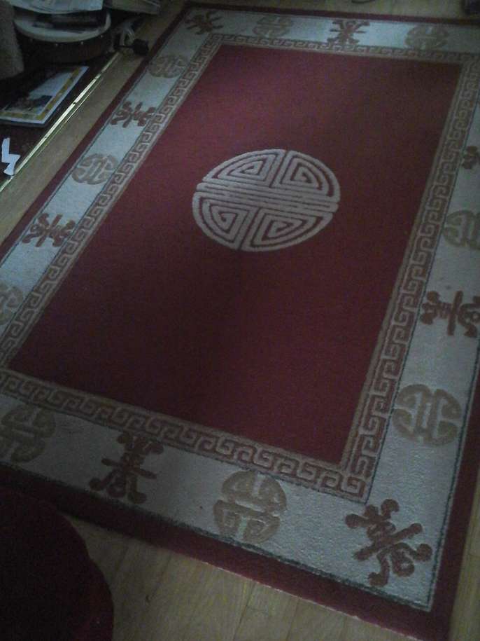 Well used rug. Does have signs of lot of wear and tear. Was going to tip but might just do someone. 68x47inches Main colour red