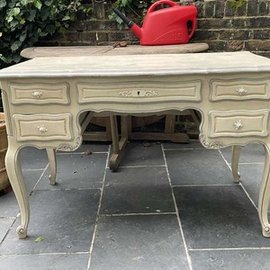 Painted cream and blue Scandinavian desk or dressing table with drawers