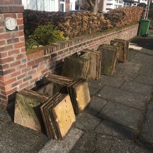 40 x 600mm by 450mm clean riven flags. 25 x 450mm by 450mm clean riven flags. 8 x 450mm by 150mm clean riven flags. Please leave contact phone number