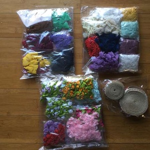 Selection of tassels,fringe tassels,satin flowers and 4 reels of ribbon with embroidered hearts