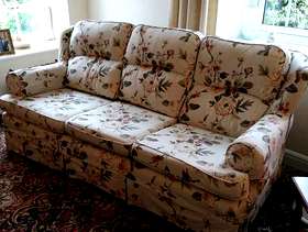 Free three seater settee with loose covers. Floral design. Easy to move. Excellent condition. Only giving away due to down sizing. Must be collected.