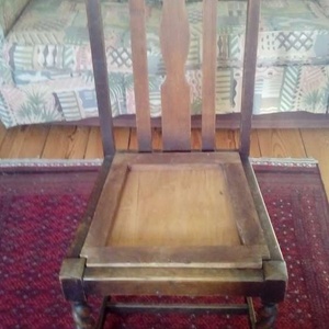 Seven chairs with turned legs. Three have seat inserts. Solid but in need of up cycling. Can help with delivery in Bristol area if needed.