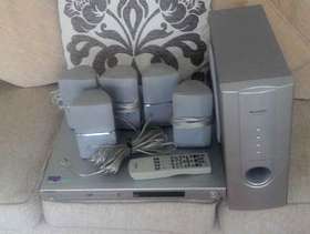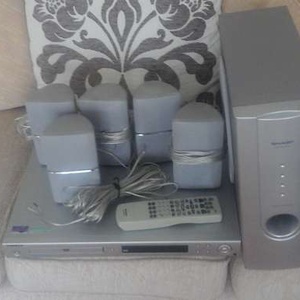 Surround sound system with remote control, 5 speakers plus sub woofer and all wires, can be used anywhere in the home. Also has FM RADIO built in...!!! Teenager friendly