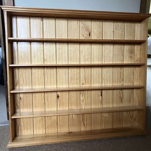 Pine shelf unit, originally used to house tapes but ideal for ornaments and collectibles. Size 81.5 cm (w) x71.5cm (h) x9cm (d) . Excellent condition. Free to collect