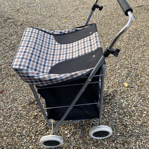 A checked shopping trolley. Folding. With wheels. Lightweight. Collect Scole.