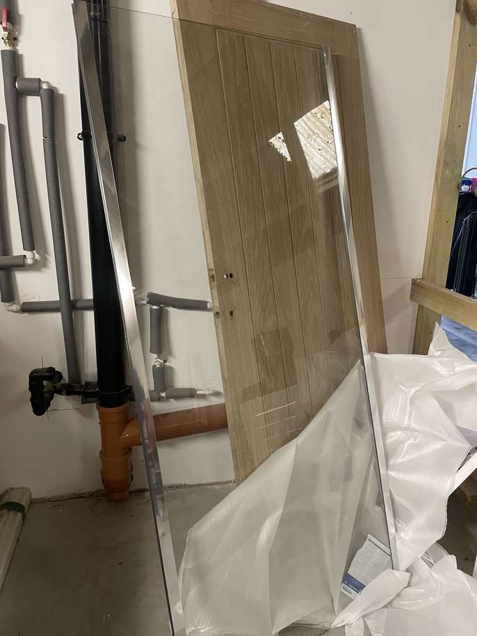 This is part of a shower cubicle enclosure, new and unused (870mm wide x 1900mm tall ). as we built the shower three sides into a wall, comes in a box for easier transport. It is heavy but could be used fir many other purposes, we indeed es to put a window in a log cabin but have now decided against it
