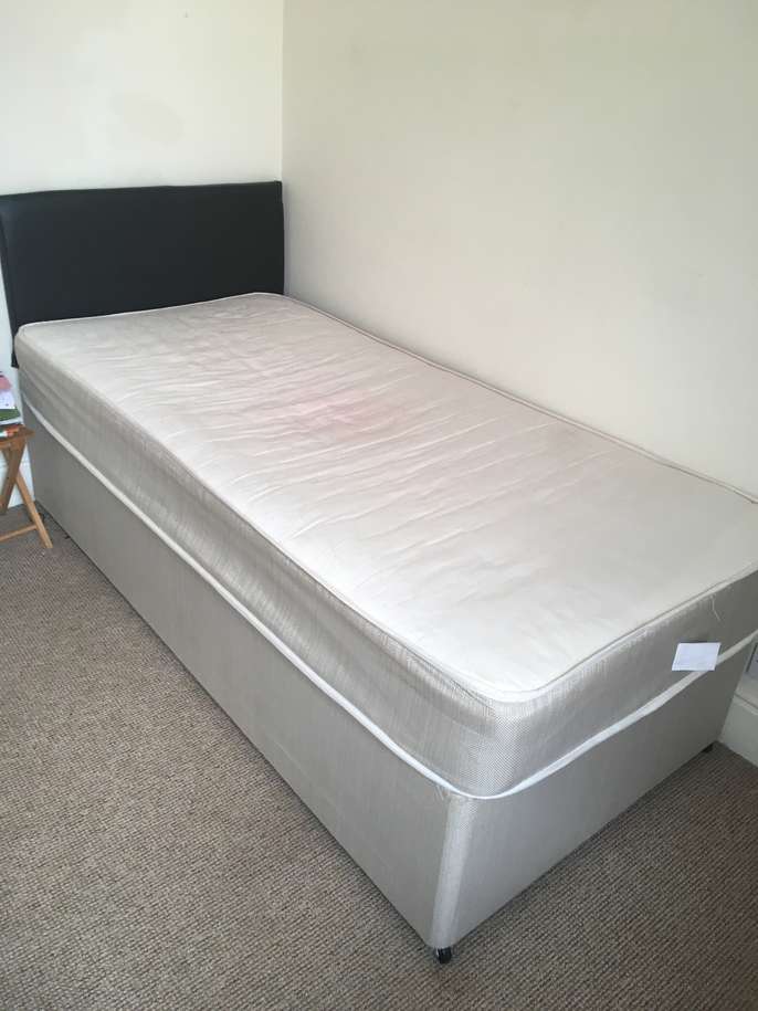 A single bed, less than 9 months old. Good condition, mattered and head bored included. Mattered has a bit of a red tinge to it due to the sheet used.