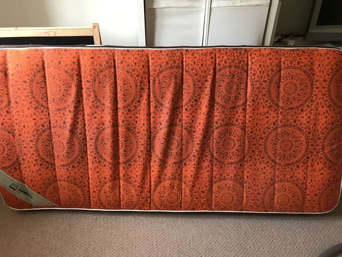 A metal single bed frame and mattress. Would be ideal as a child’s bed or spare bedroom.