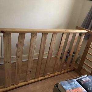 Pine single bed in good condition. Already dismantled for ease of transportation.