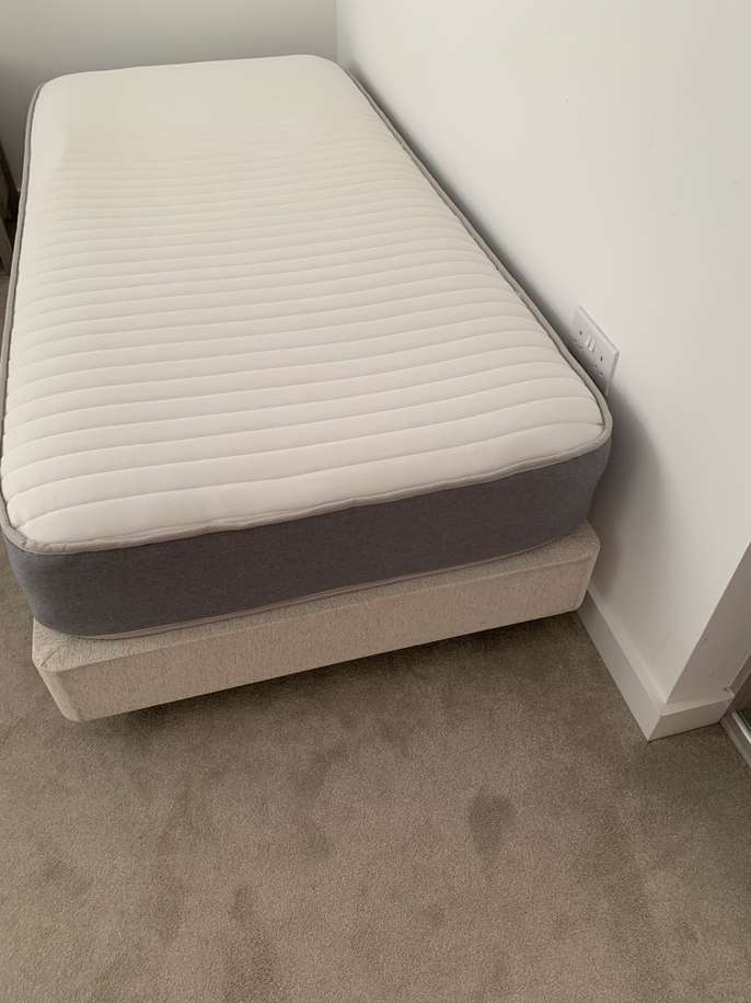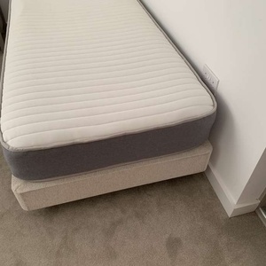 3 ft Single Bed. 90 cm wide. It has shorter legs than it came with but I have the originals too. Only been used for occasional grandchildren overnight stays. Mattress is very comfortable.