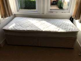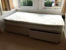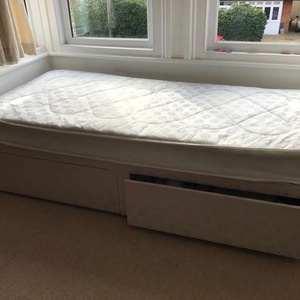 Single bed & mattress with 2 underbid storage drawers. suitable as occasional bed or for child. Collection from Sonning Common