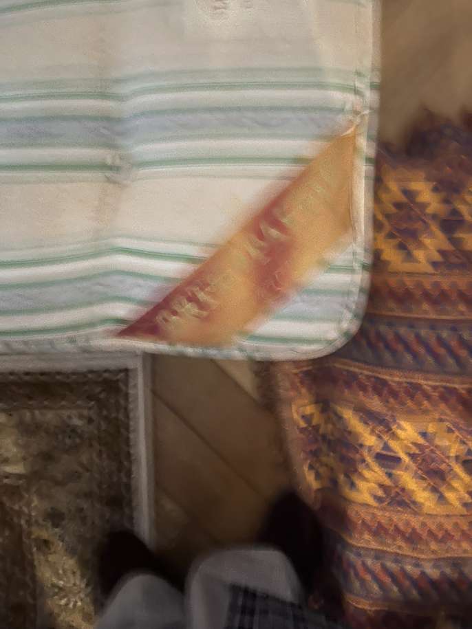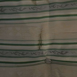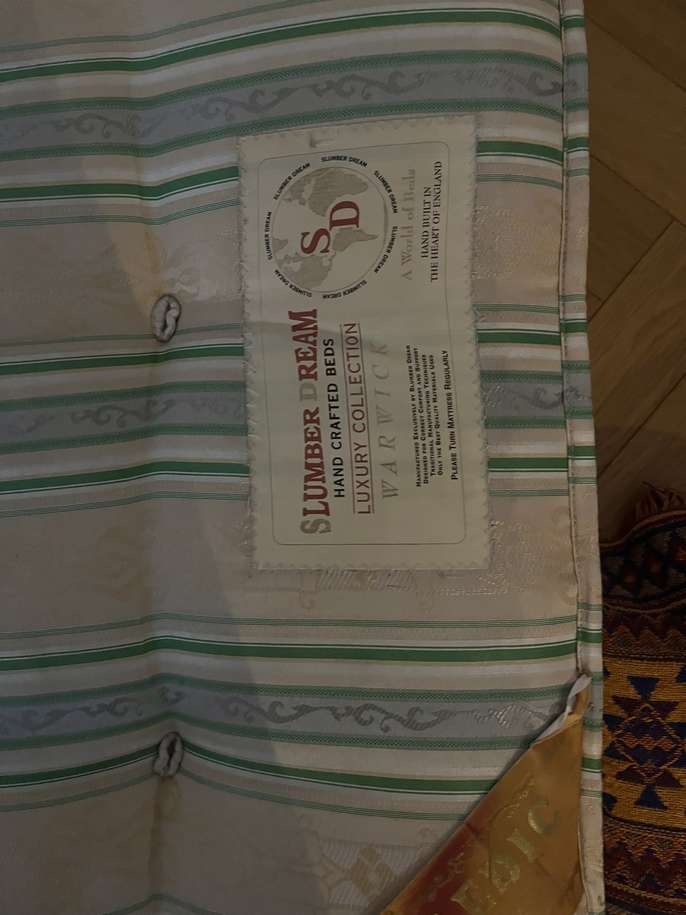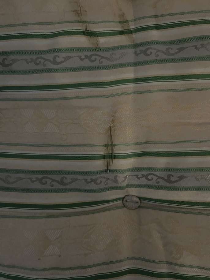 This is in fair condition and is fine to sleep on. It has some staining from tea and is a few years old. There are some cuts in the fabric which I have shown in the photo. It is still firm and comfortable to sleep on and in spite of being a few years old, it has not been used much.