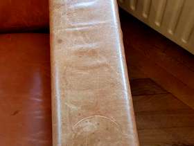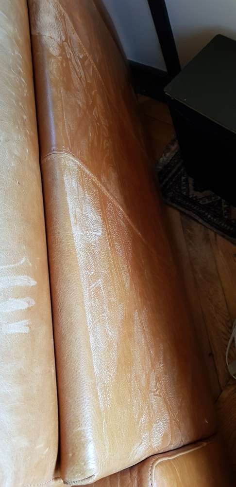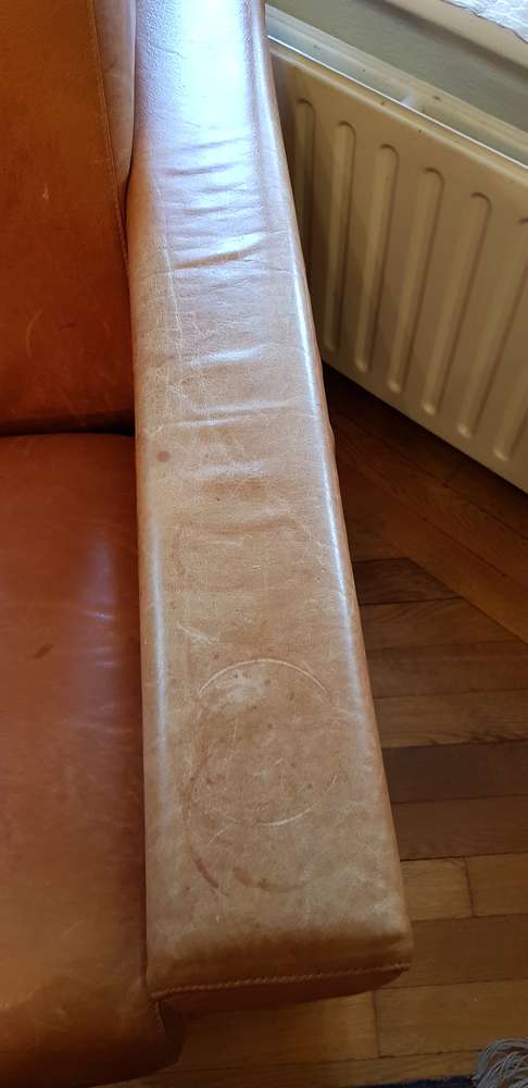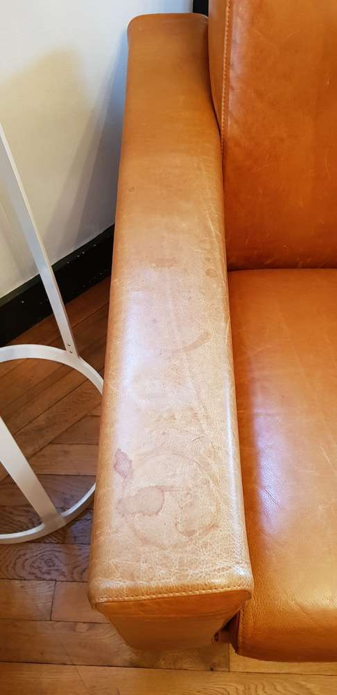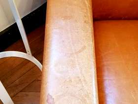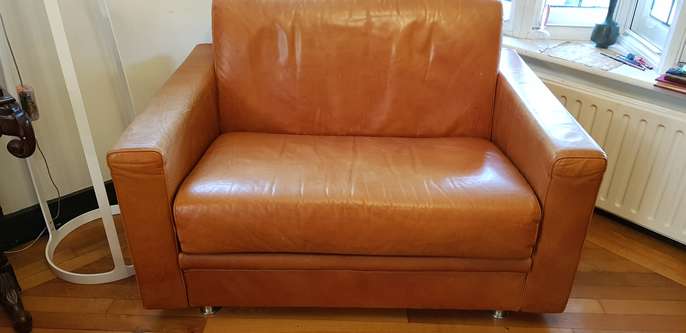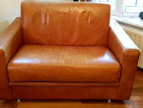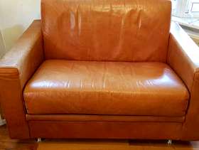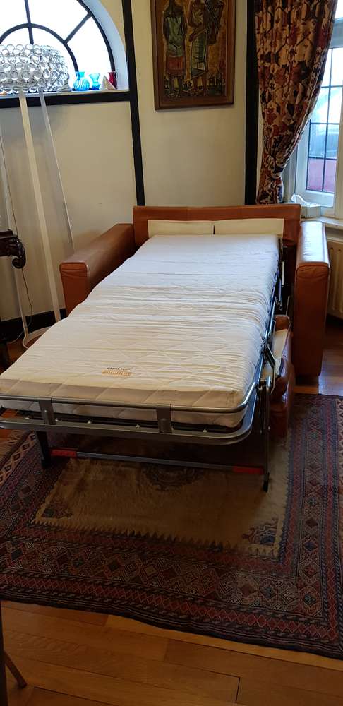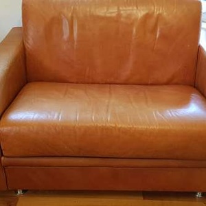 Single sofa, leather, Italian design. Excellent mechanical condition. Bed has removable, washable cover. Leather faded and stained but intact. 50" (L) x 35"(W) x 31" (H)