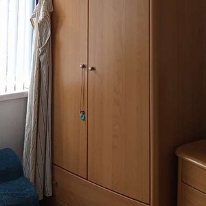 Solid beech wardrode. Hanging space to top and 2 drawers under.
