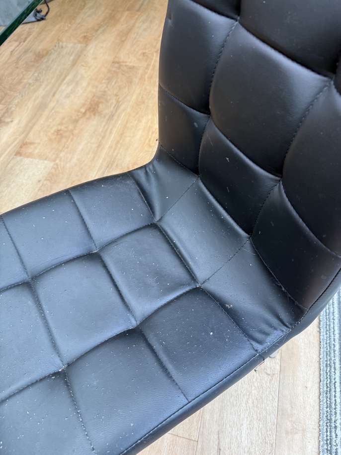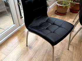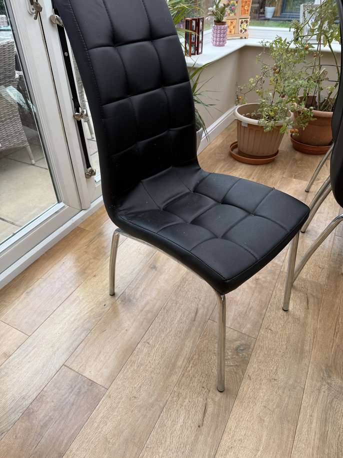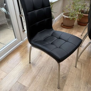 Comfortable and strong. Black faux leather and chrome. Unfortunately the seats have been clawed by my cats. Still usable though. Maybe they could be recovered or cushions used. Collection from Holmer Green