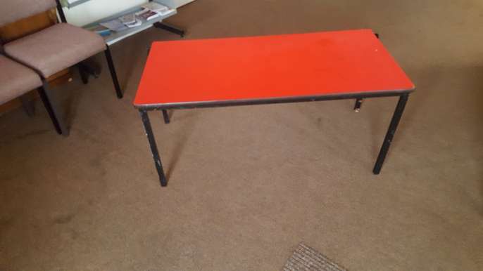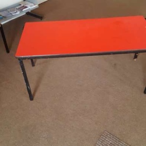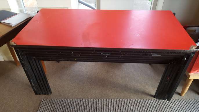 Six heavy-duty stacking tables This item is in Abingdon on Thames GB All the details Red melamine tops, metal frames. Suit community/church hall etc Category Furniture The Request Period For This Item Has Ended The request period for this item has ended Post Message