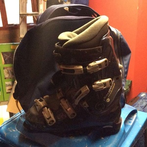 Ski boots and bag gents size ten, used 6 weeks so condition is ok see photo. Salomon evolution