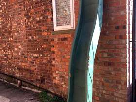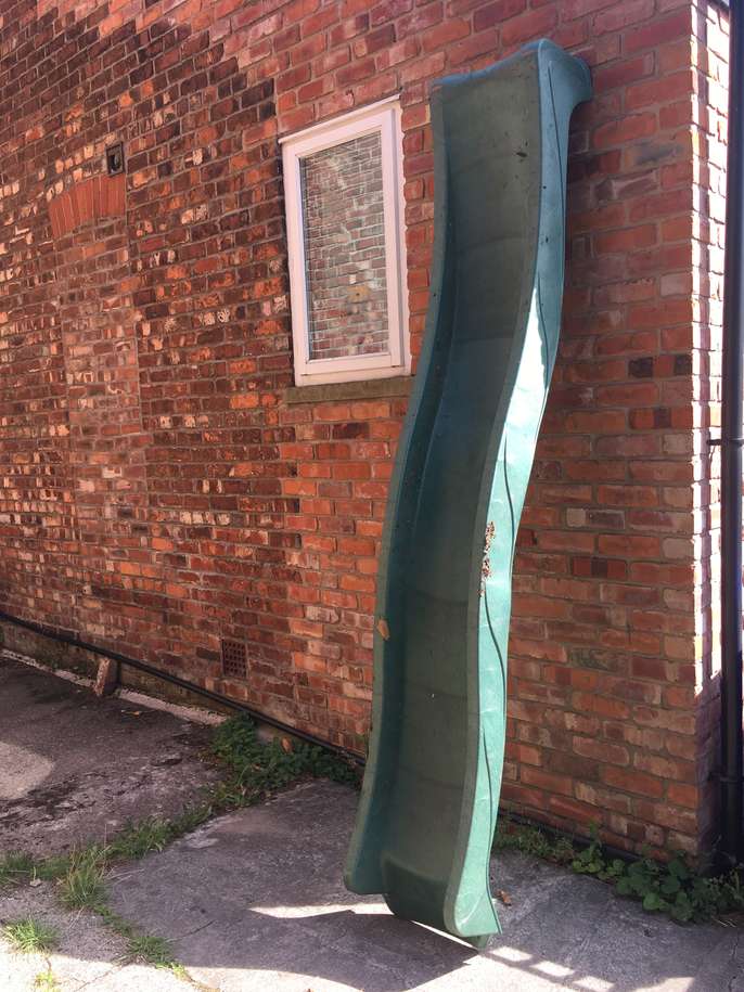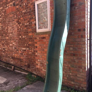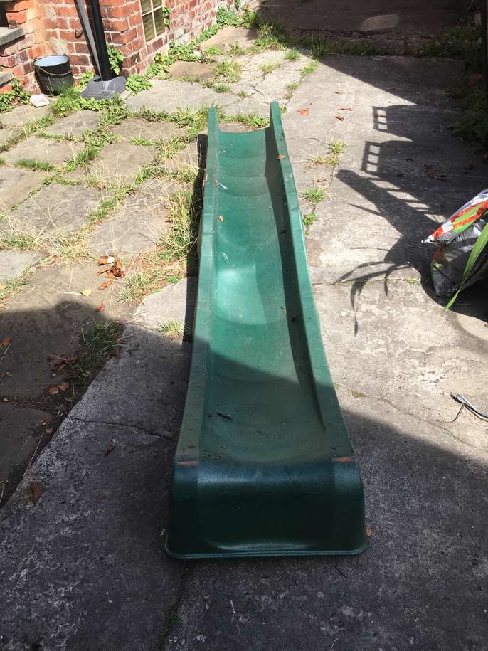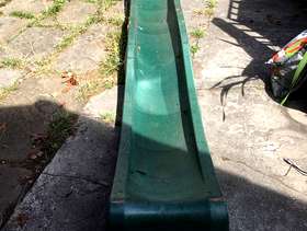 Long plastic slide (285cm). Just the slide, i.e. without steps (which rotted). Would need securing to a ladder or tree or something. Very solid although has a crack on one side (see pic). Could be lots of fun if you're practical enough to rig it up to something.