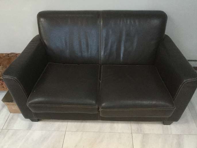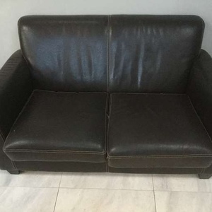Small 2 seater brown leather sofa