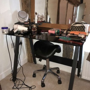 Black glass desk / dressing table. 4 sturdy legs. Free. 1 m x 70cm x 76 high NOW GONE