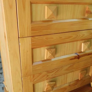 Two small, three drawer drawers. Pine wood and composite material, natural pine finish. Roughly 32" high, 36"wide , 22" deep. Functional, but with some loose pieces you can tighten up, repair, or replace.