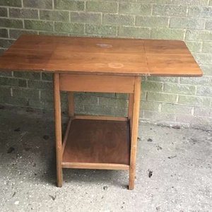 Fully extended table: 100 cm wide, 65 cm deep, 69cm high Table with sides down: 53cm wide, 65cm deep, 69cm high. Table surface is stained.