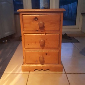 Small 3 drawer chest. 55cm high 37cm wide 28cm deep. Solid pine