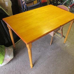 Small pine table with removeable legs in need of some tlc - hence free to a good home L 47 inches (119 cm) W 30 inches (76 cm) H 30 inches (76 cm)
