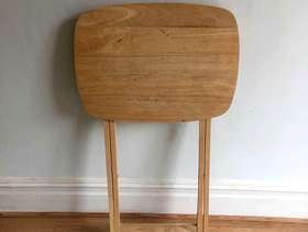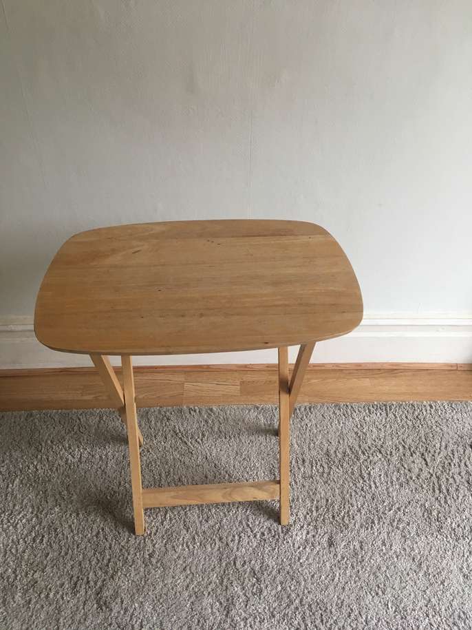 Small wooden coffee table/side table. Light in colour and in good condition. Table folds flat for easy storage.