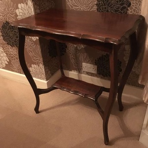A nice table we have been using as a telephone table in our hall. 75cm High by 68cm wide by 43cm deep. Good home needed