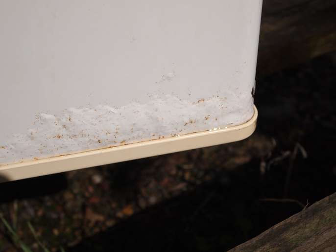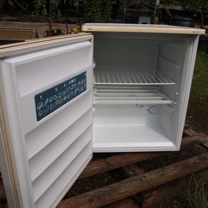 Hi. Does anyone want my little freezer ? It has served me well but I have just got a bigger one. It works perfectly although it is old and shows the usual signs of wear of tear. I have thoroughly cleaned it and all the door seals are good. There are some small patches on the bottom where the paint is bubbling and some rust has appeared. Have a look at the pics. It is smaller than the standard under counter size. H:63/64cm D:47cm W:50cm. The door currently swings open from the left but this can be switched over. Collection from Sutton St Nicholas. HR1.