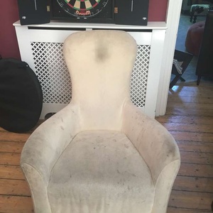 Small but comfy arm chair, old and has lots of marks, needs recovering.