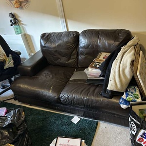 2 seater brown sofa , possibly leather Good to fair condition Flat clearance item In Wellesbourne