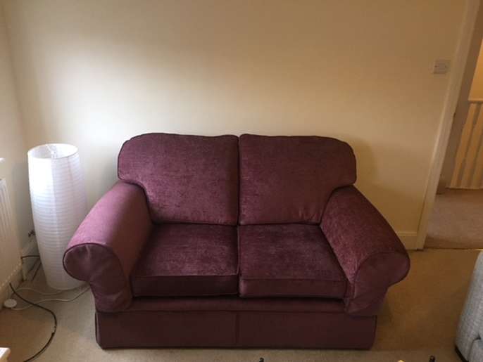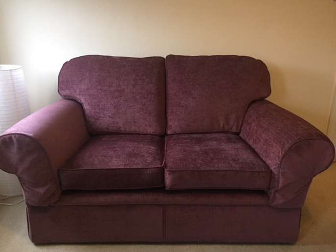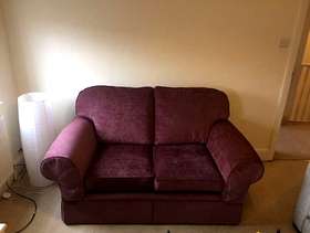Lovely 2 seater sofa in purple. Width 165cm depth 95cm. Great condition, clean fabric (no stains/tears) and comfortable! Must be collected an evening this week (need a van). Location is near Earlsfield station.