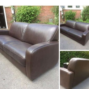 Large leather sofa. 82" Long x 33" deep x 33" High. Small tear on one seat, otherwise extremely comfy & once very expensive sofa