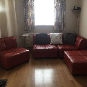 4 piece leather sofa. Able to create 3 seater sofa and foot stool, 2 seater sofa, 1 armchair and foot stool, 3 armchairs and footstool