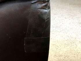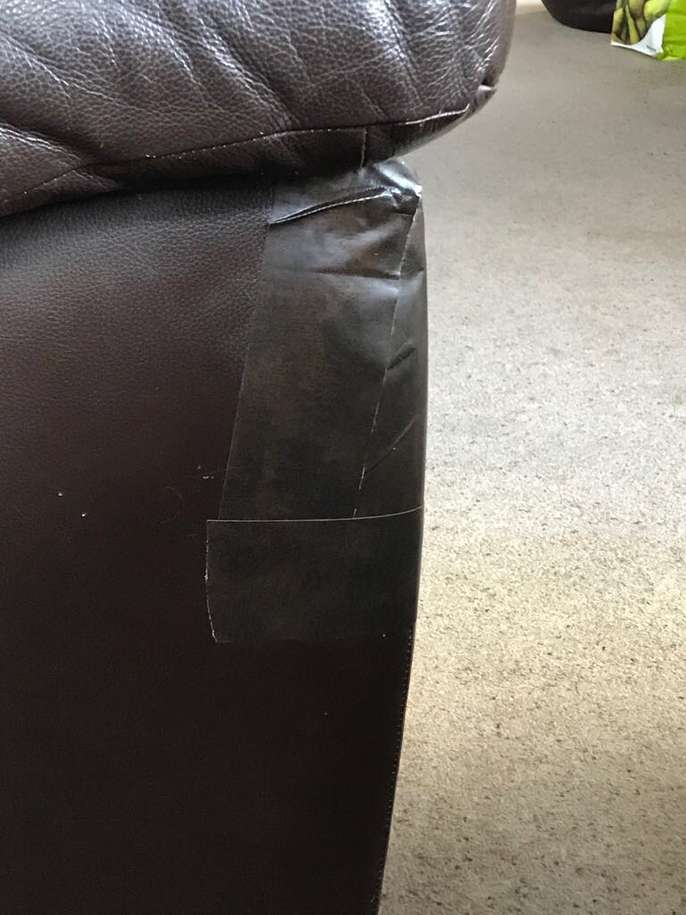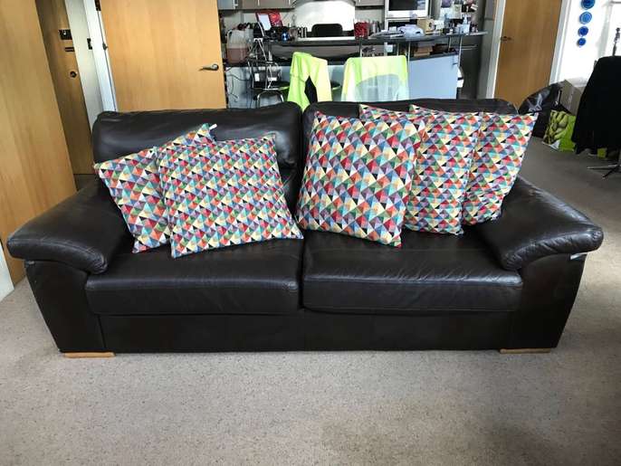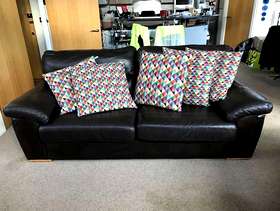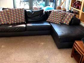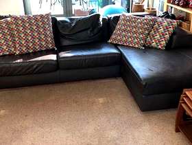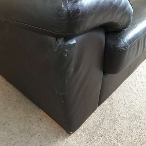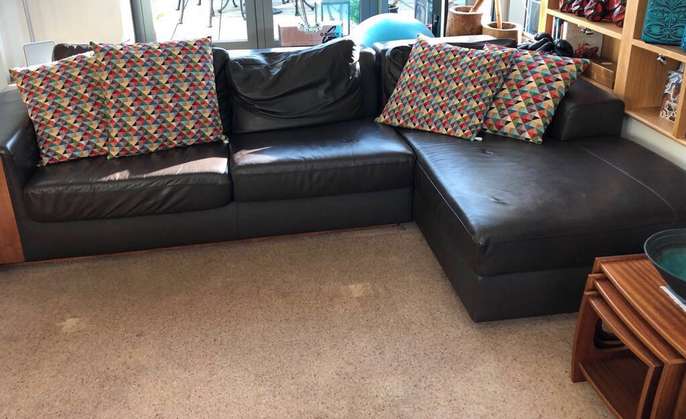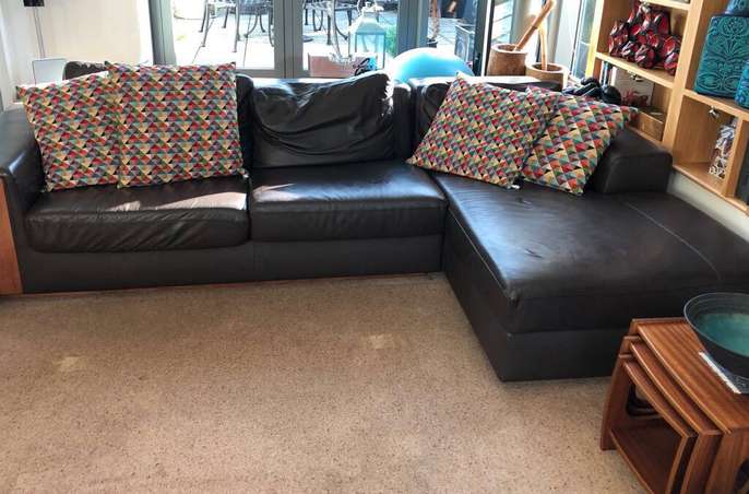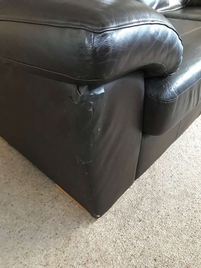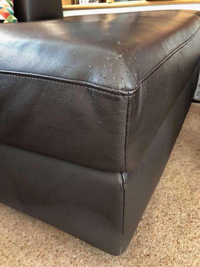 Brown leather L Shaped sofa Collect immediatly Scratches from cats in areas Still loads of life left