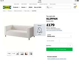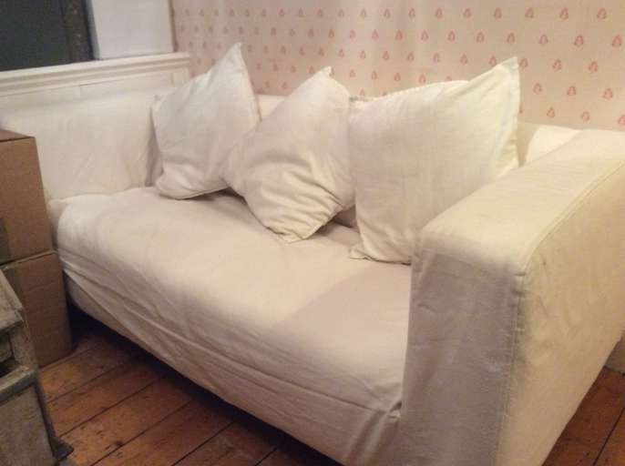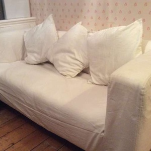 2 seater white sofa from Ikea. Washable covers. Good condition. Dimensions on photo from Ikea website. (Width actually comes up 175cm). Please collect from W4 - free parking, sofa on ground floor. 4 legs (about 6 inches) unscrew if needed for removal/transport purposes. We have previously moved it in/out of a one bed flat and a 3 bed house with stairs.