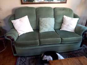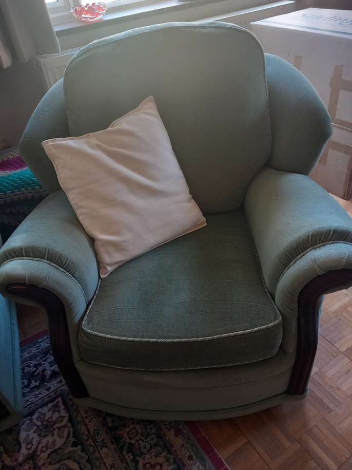 Green 3 seater sofa and armchair. Clean and comfortable. Must be collected by Wednesday evening 8th october