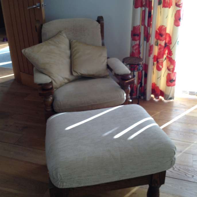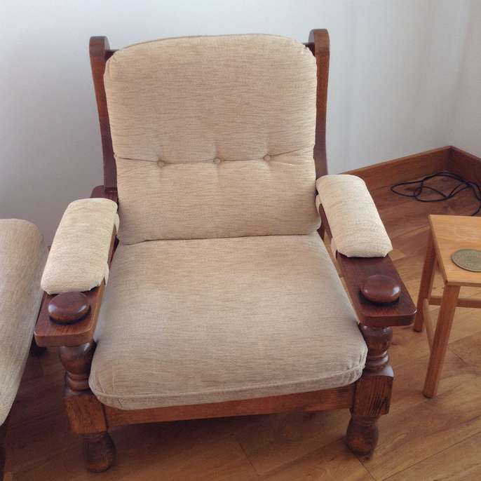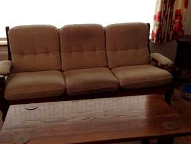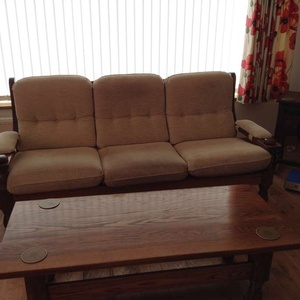 I am very happy to see this sofa , as I have inherited the same sofas when I bought my house., but there was no cushions fitted on it. Can you please allow me to come and have a close look at the cushion fixtures and aslo, I would like to ask you if you can please give me the coffee table and the foot stool. I live in Bishops Stortford.