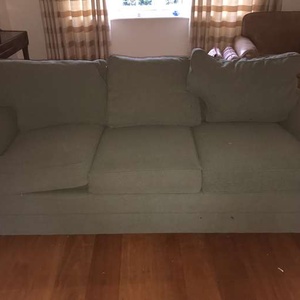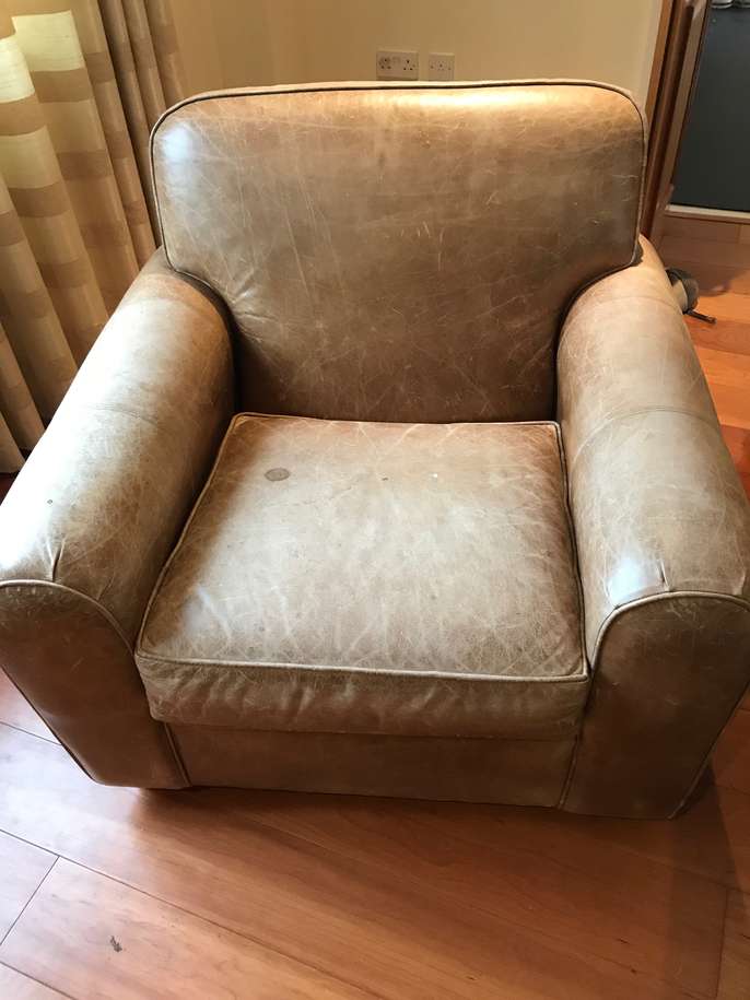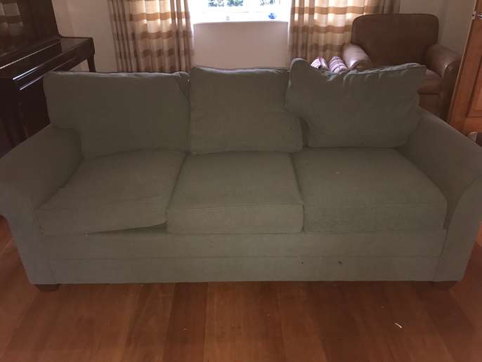 I have a 3 seater green sofa - quite heavy and a leather chair and ottoman. You will need a large van to take it away. If you do not have access to a van I have 2 people who will deliver it for a fee. The sofa is in good condition with just a stain or 2 underneath one of the cushions. The leather chair is faded and a bit scratched.