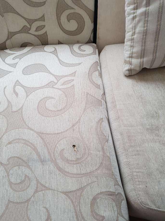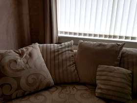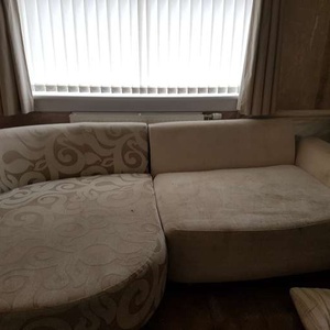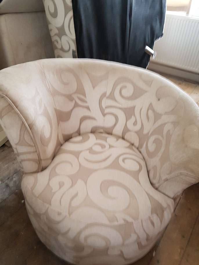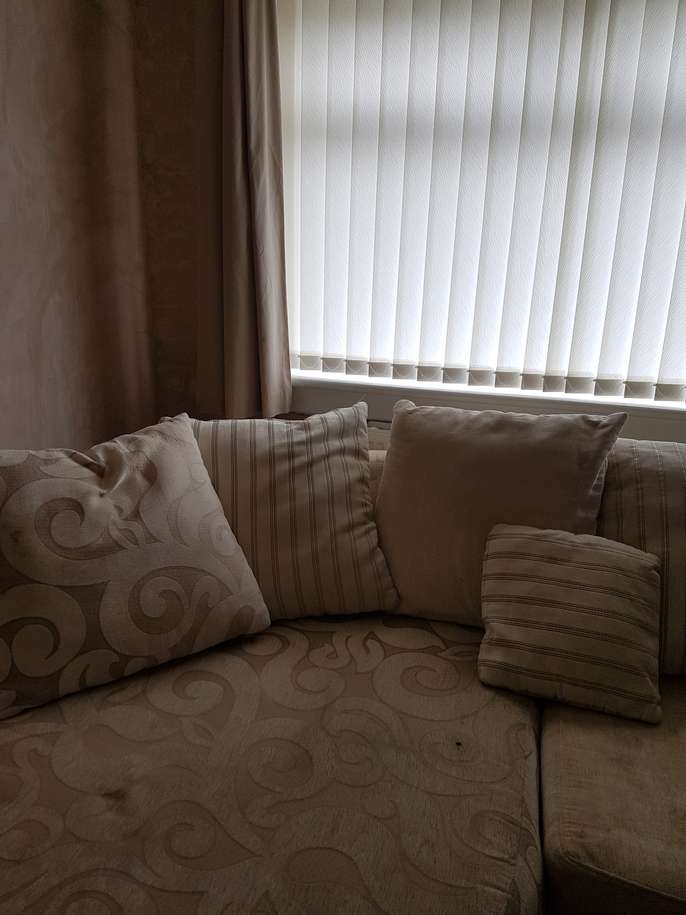 DfS suite corner sofa and swifal chair in cream and beige needs cleaning was my grandsons not good colour for boys. Has small cig burn on sofa seat otherwise good condition will clean up. Free needs collecting